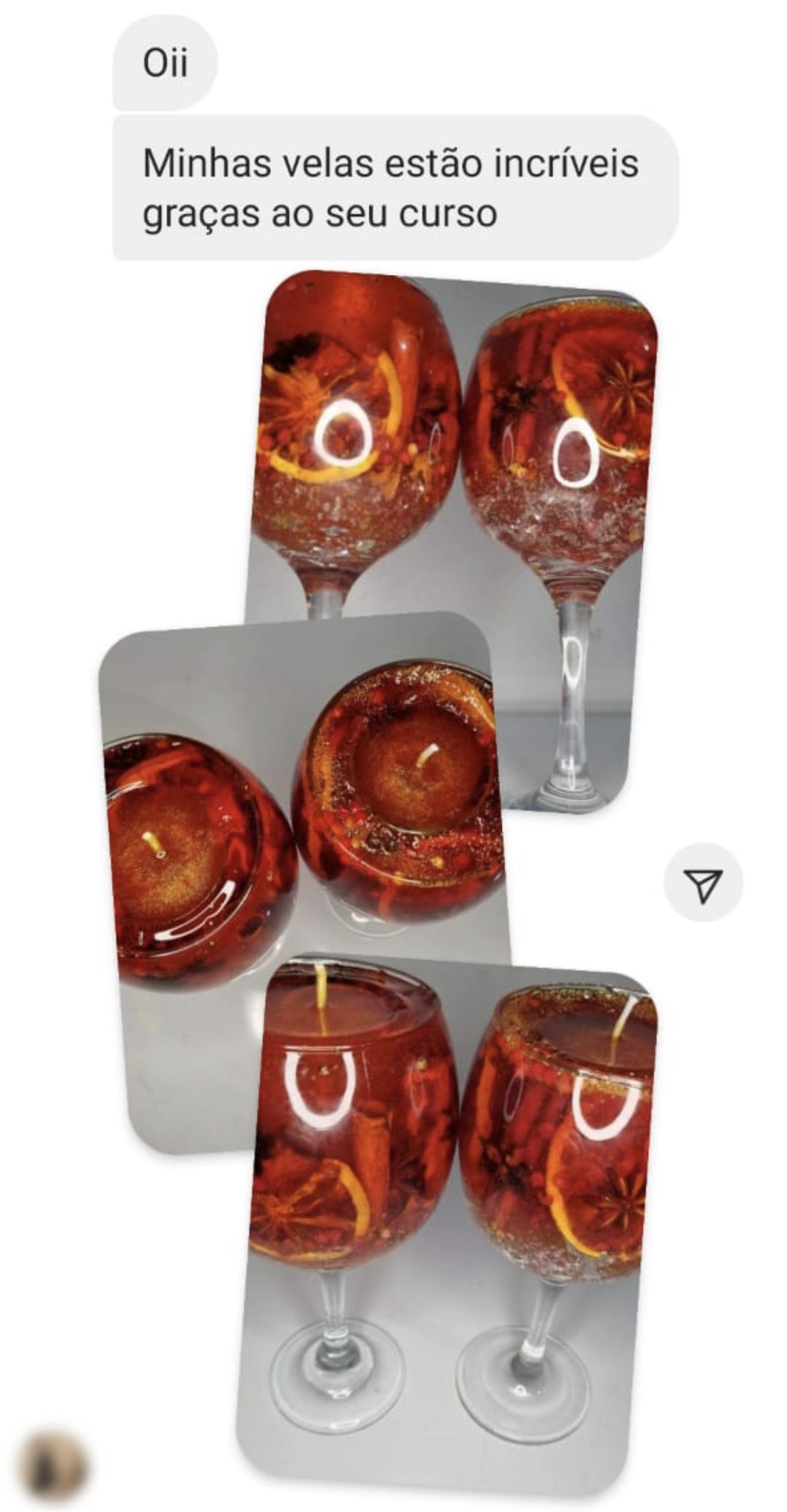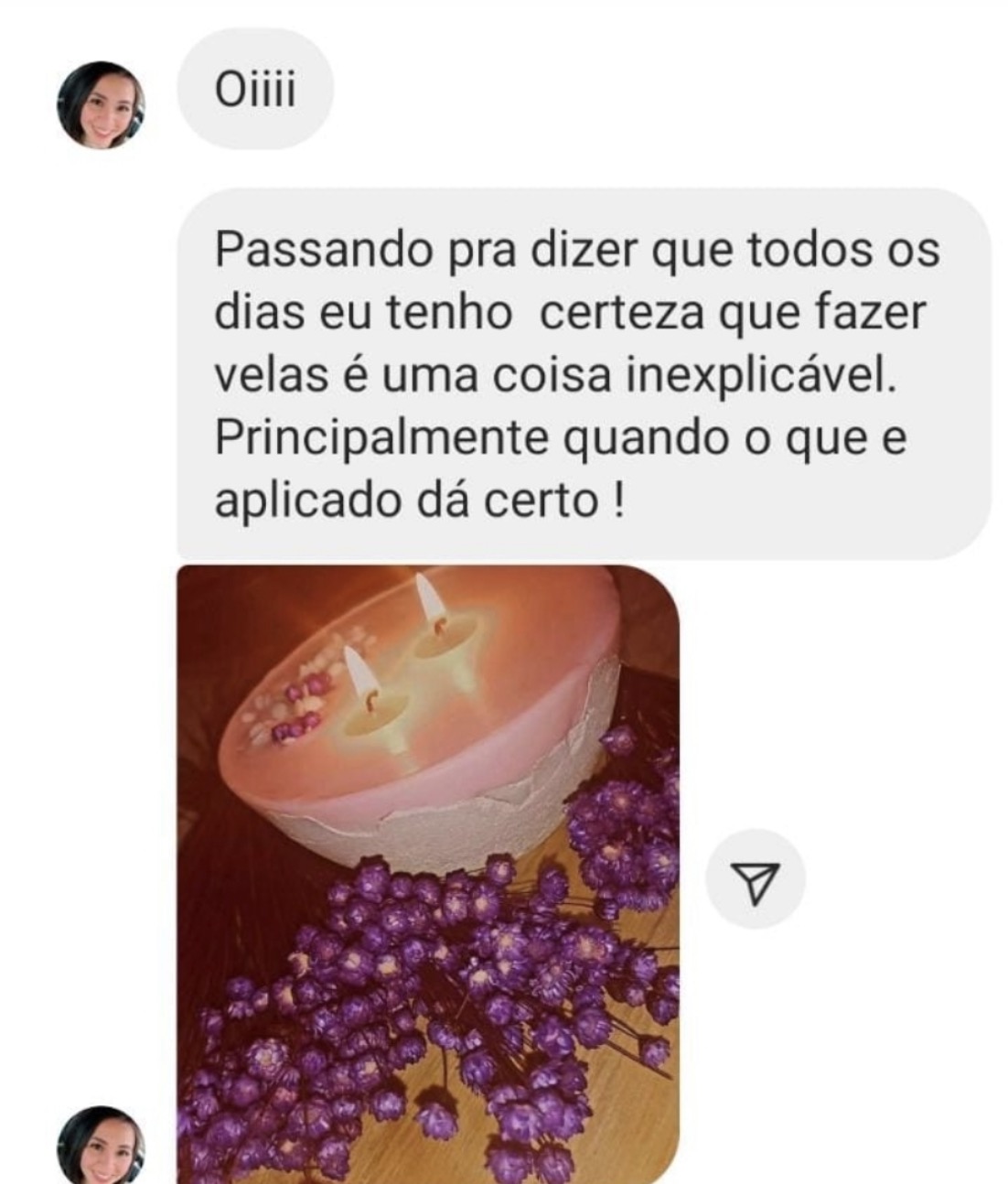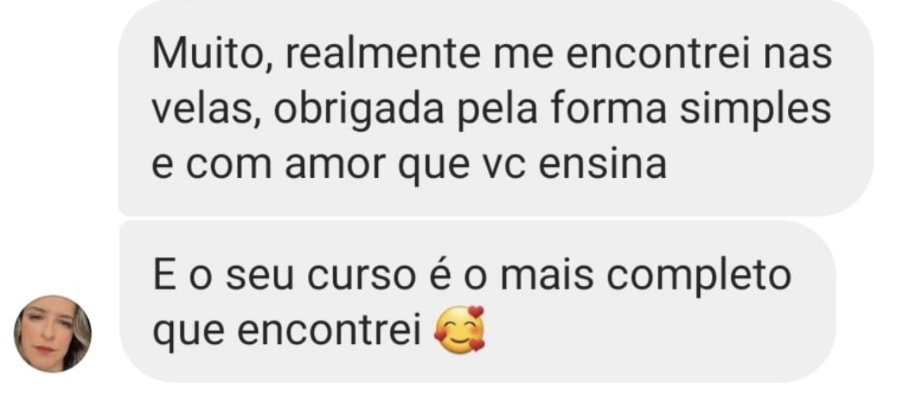 Apaixonada por compartilhar conhecimento, Carolina estudou com diversos profissionais do nicho e, ao longo dos anos, desenvolveu um método próprio que ensina qualquer pessoa a criar velas encantadoras, mesmo começando com poucos recursos.